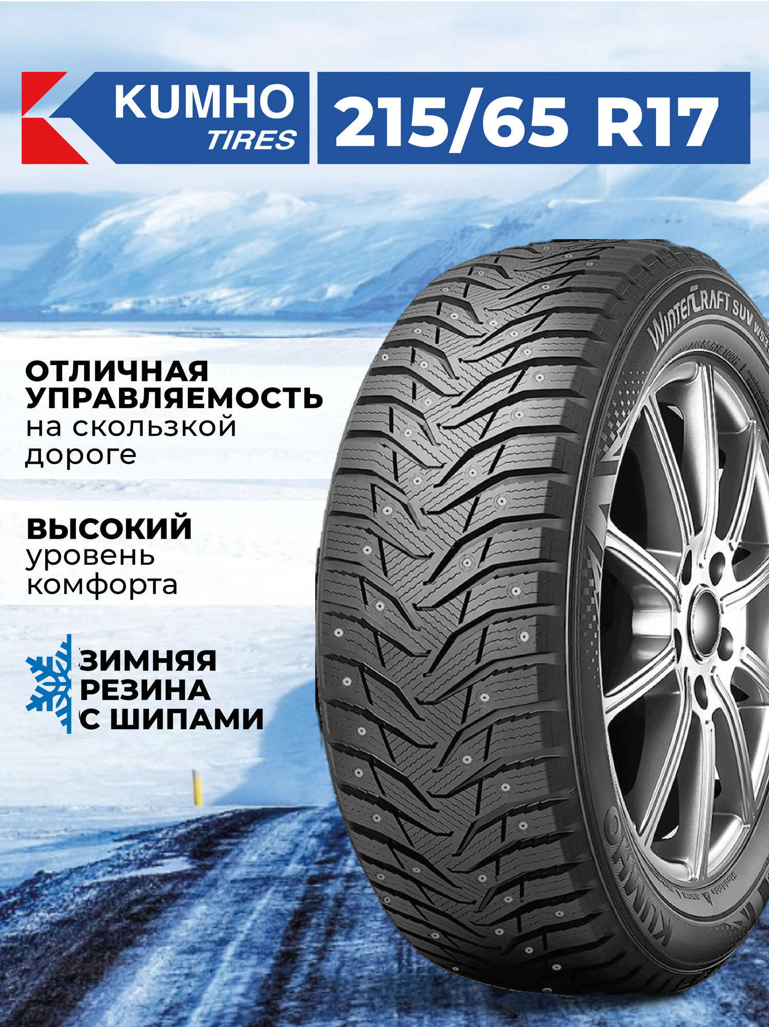 Зимняя шипованная шина Kumho WinterCraft SUV Ice WS31 245/65 R17 111T