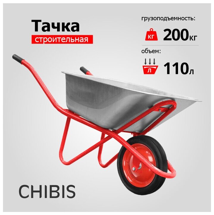 Тачка строительная 'чибис' 110л/200кг усиленная (1 литое 4.00-8 оц кузов 0,8 мм неразборная рама) 6418НL интересное: