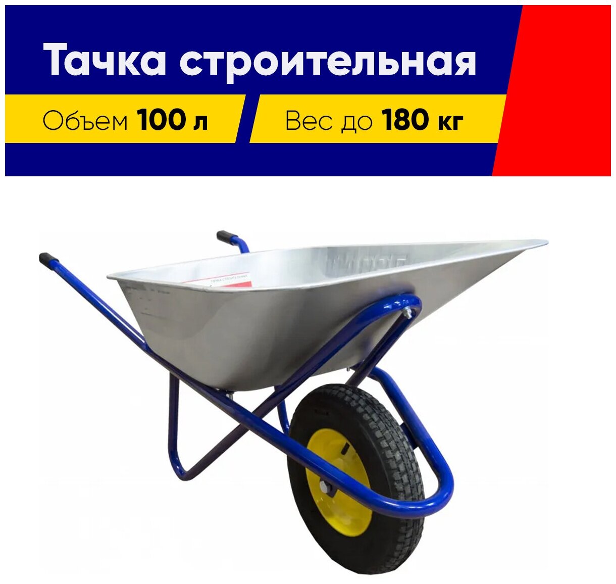 Тачка строительная 100л. 180кг, BRAIT 1к, 4.00-8/16 пневмо (синяя)объем 100л, грузопод. до 180кг №31.100.180 интересное: