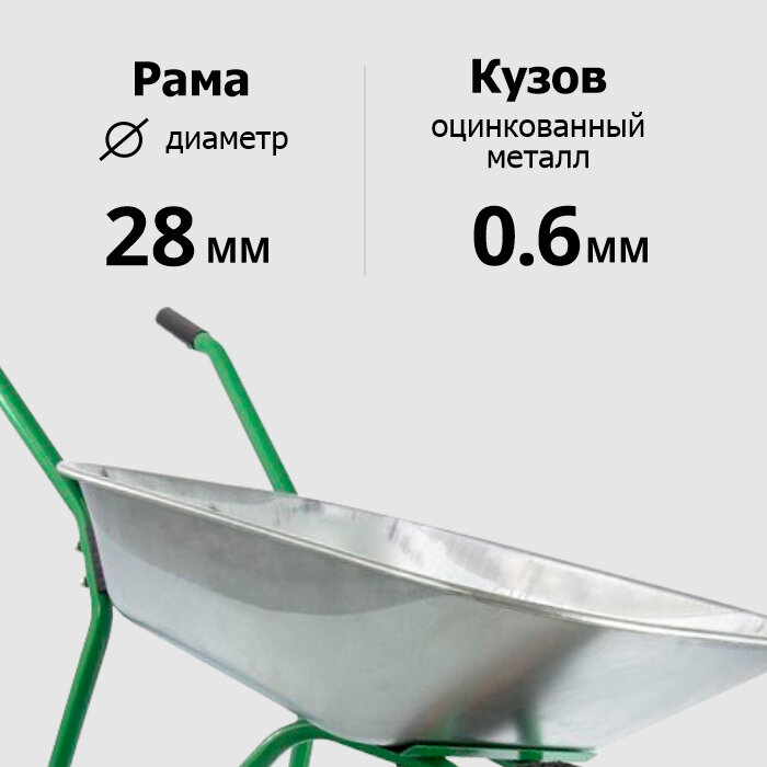 Тачка садовая 'чибис' 65л/120кг (1 пневмоколесо 3.00-8 оц кузов 0,6 мм разбор рама) 6204 интересное: