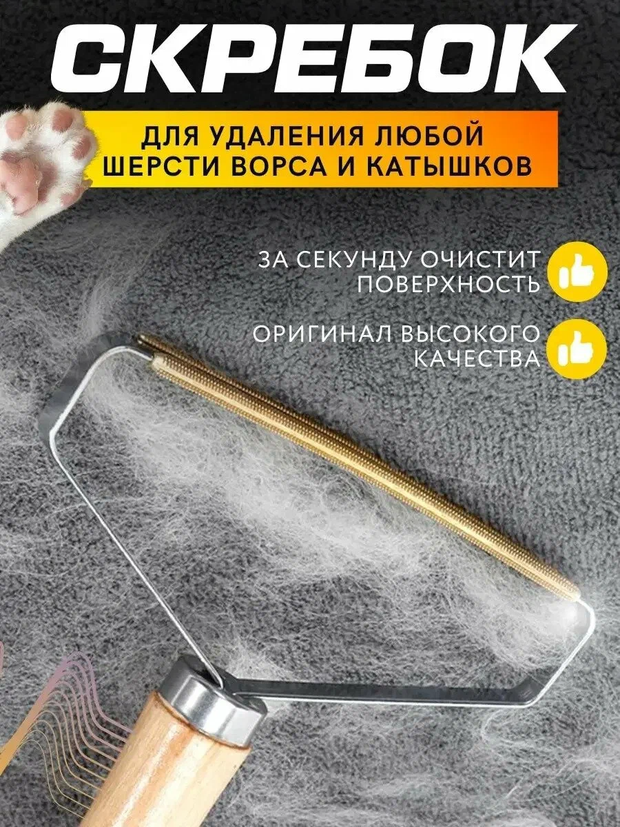 Машинка скребок для удаления шерсти животных, катышков, волос, ворса, чистки ковров, для одежды The Convenience с деревянной ручкой универсальная