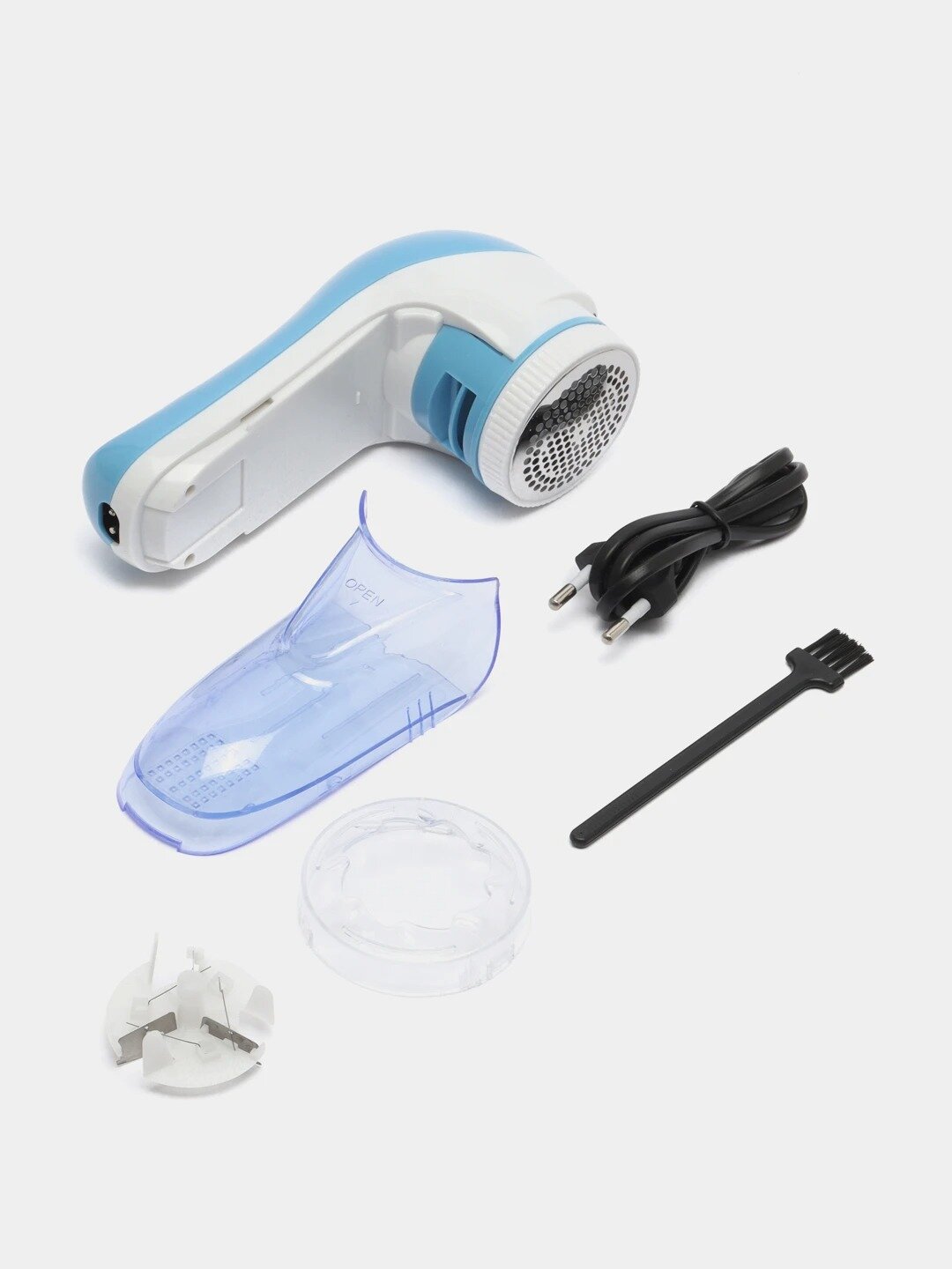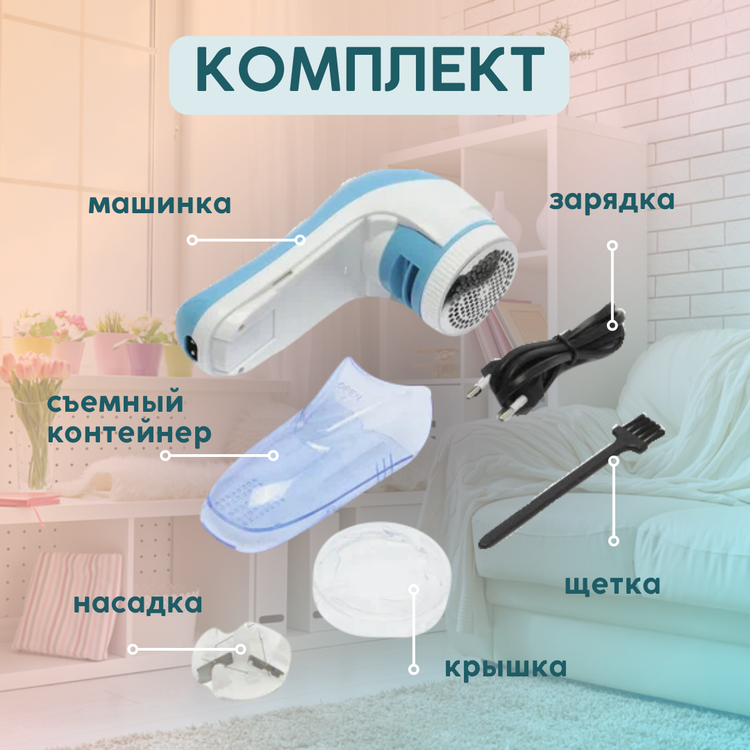 | Плюсы: | Пришло все хорошо упаковано, сама машинка в целости, работает с зарядкой и без. Собирает катышки и контейнер, который легко чистится. В наборе насадка с лезвием (запасное), щеточка для очистки. |