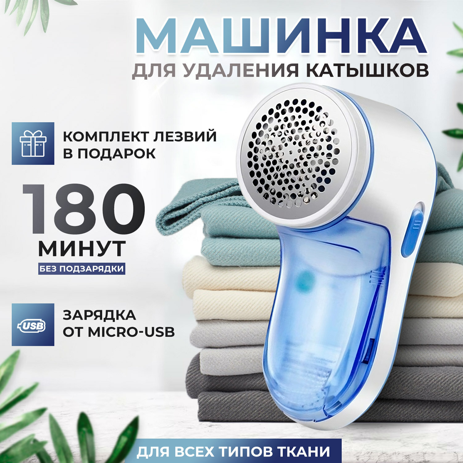| В комплекте | запасное лезвие, USB-кабель, машинка для удаления катышков, щетка для уборки |