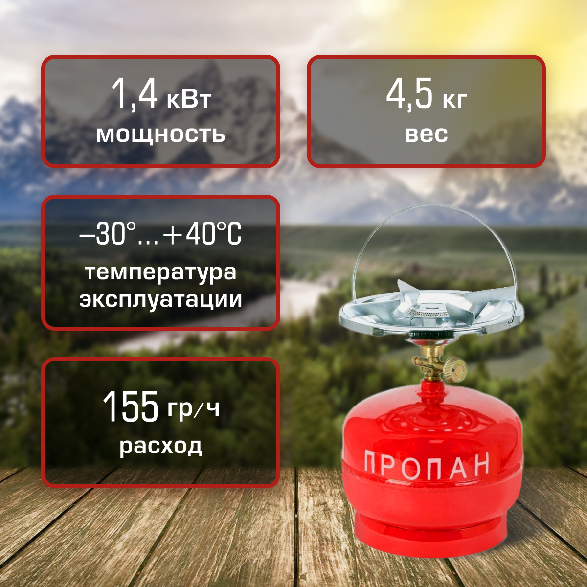 | Минусы: | нет пьезо поджига, нужно аккуратно поджигать, тугой вентиль |