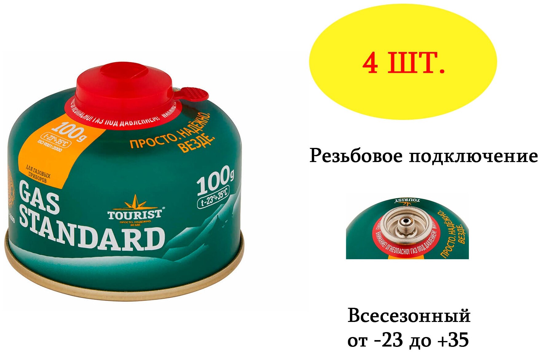 Баллон газовый резьбовой Tourist Standard 100г, комплект 4шт. интересное: