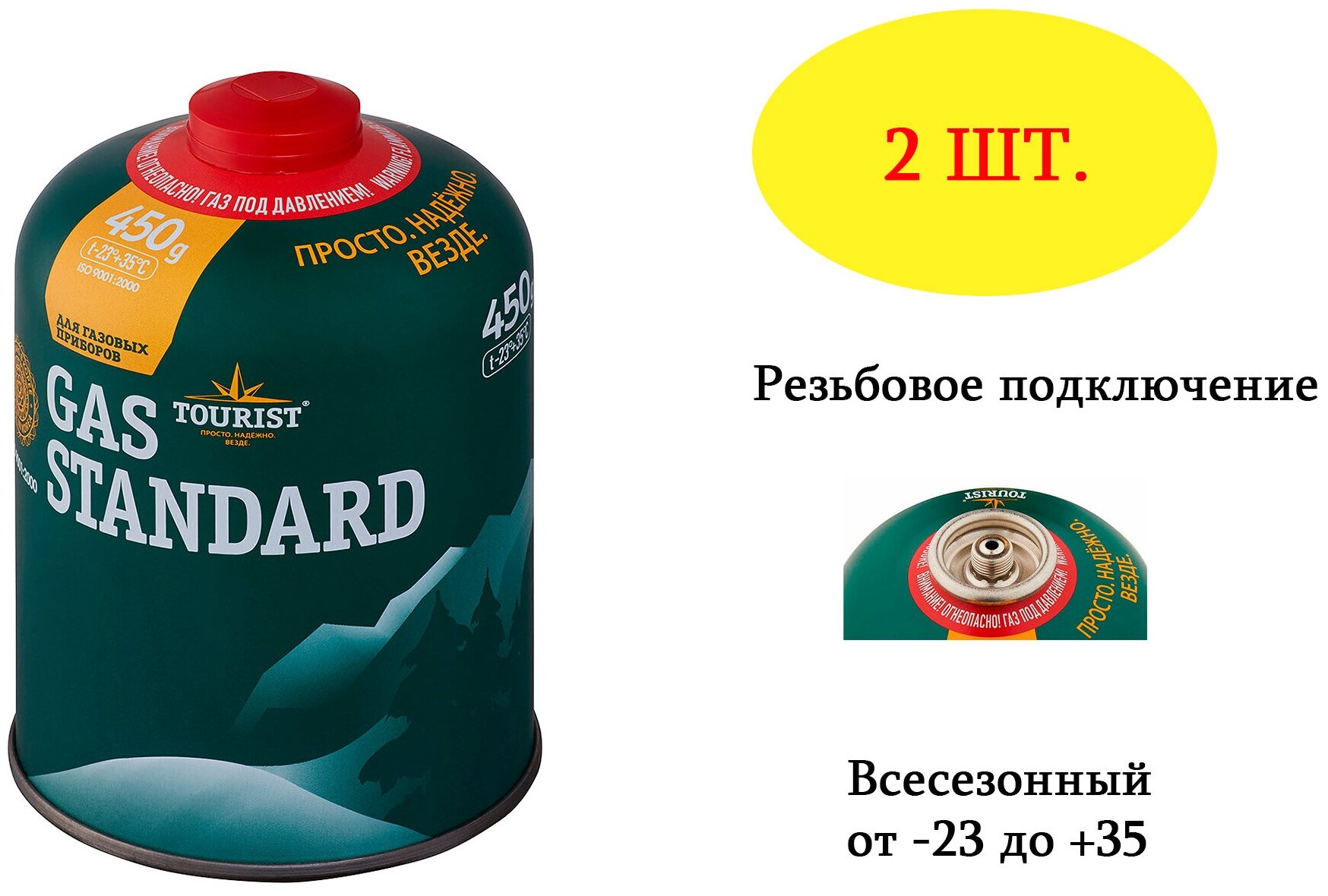 Купить 2шт Баллон TOURIST GAS STANDARD TBR-450 темно-зеленый