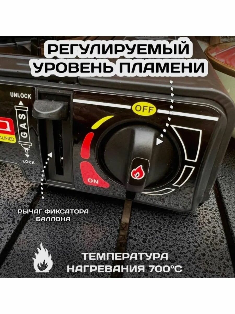 Плитка газовая походная с переходником, керамическая горелка, электроподжиг (черная), 1 шт интересное: