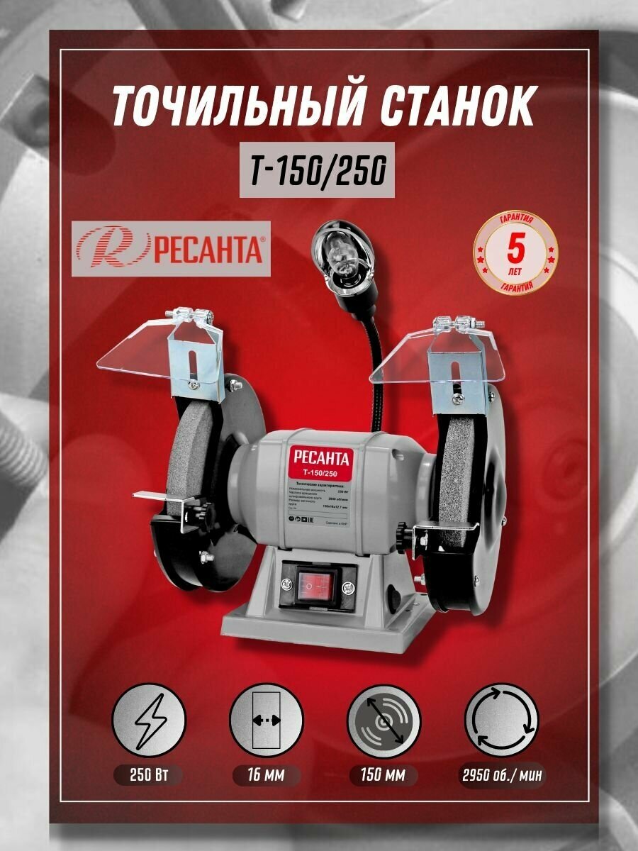 Станок точильный Ресанта Т-150/250, 250 Вт, 150 мм