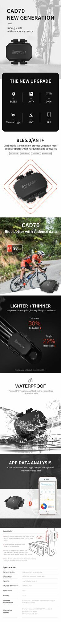 Датчик частоты вращения педалей IGPSPORT CAD70 интересное: