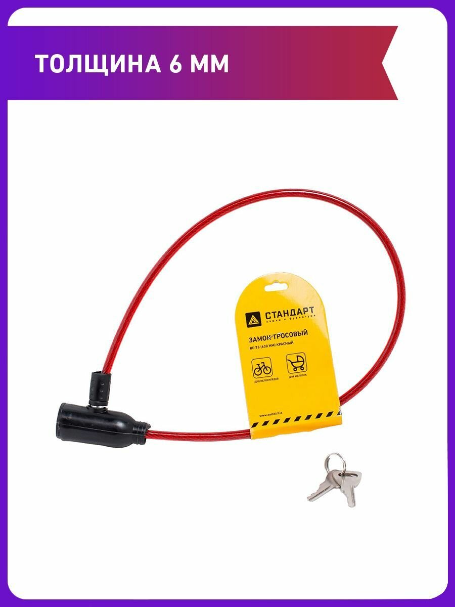 Купить Замок велосипедный тросовый стандарт ВС-Т6 (600 мм) красный
