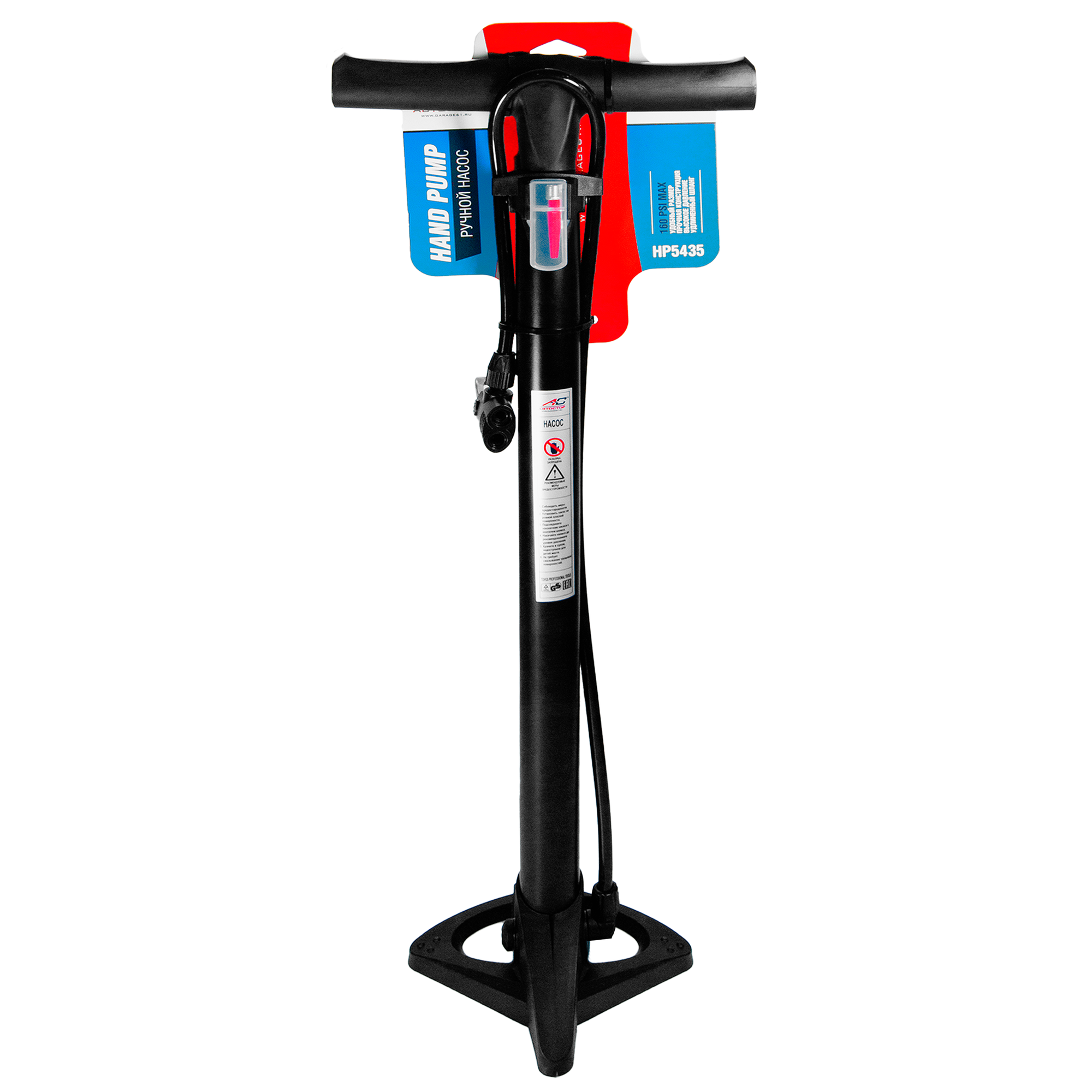Купить Насос ручной , удлиненный шланг, матовый (металл) HP5435, + игла, +насадка для матраса, велосипедный/авто, 160 PSI, велонасос Автостор, черный