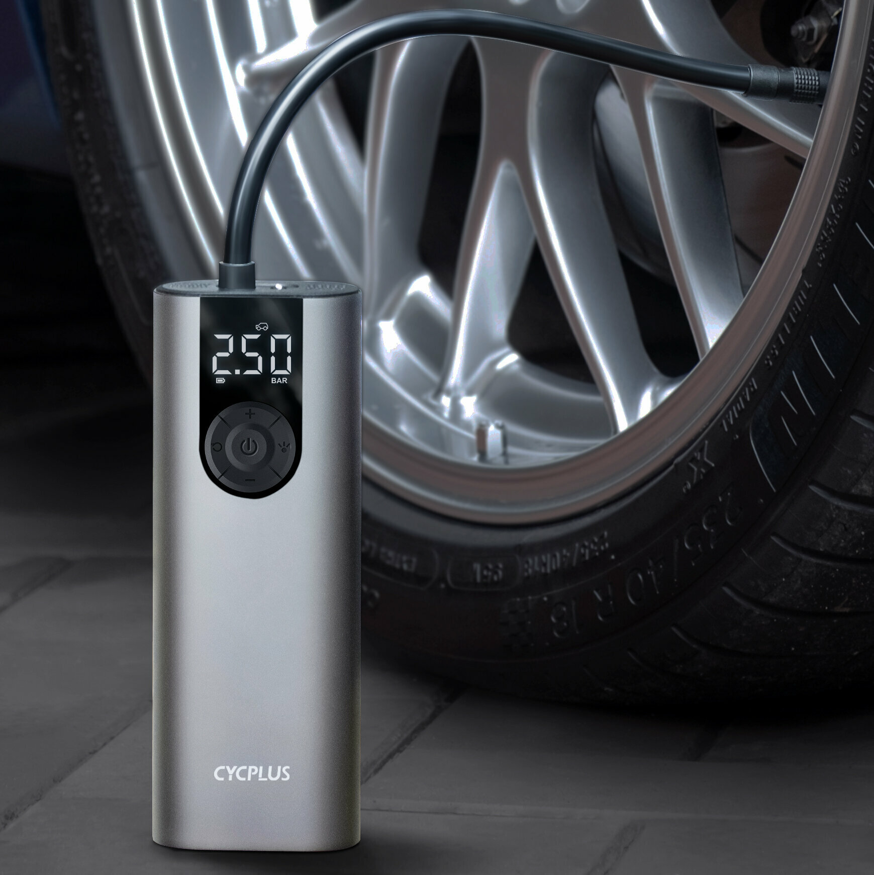 Портативный электрический насос компрессор Cycplus A8 Air Pump, Silver, 5В, аккумулятор 2600мАч, 150PSI, серебристый (для шин автомобиля, мотоцикла, велосипеда)