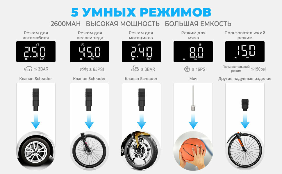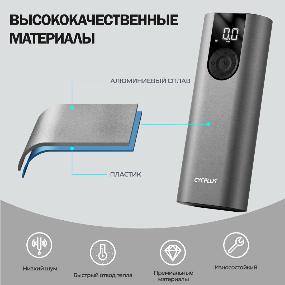 СохранитьПортативный электрический насос компрессор Cycplus A8, 5В, аккумулятор 2600мАч, 150PSI, серебристый (для шин автомобиля, мотоцикла, велосипеда) интересное: