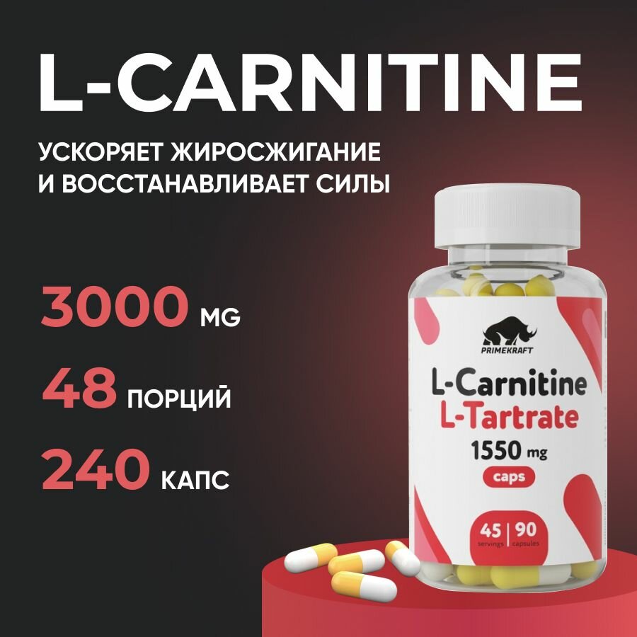 Жиросжигатель в капсулах PRIMEKRAFT L-Carnitine L-Tartrate 1550 mg (90 капсул, 45 порций) / Л-карнитин / Таблетки для похудения