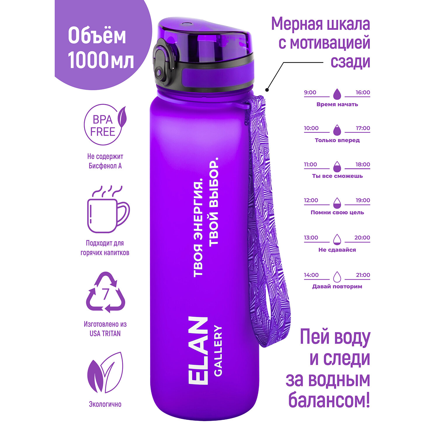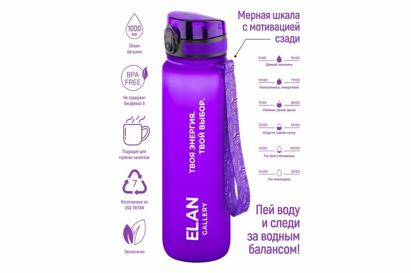 Бутылка для воды 1000 мл 7,8*7,8*28,5 см "Style Matte" мотивационная лаванда интересное: