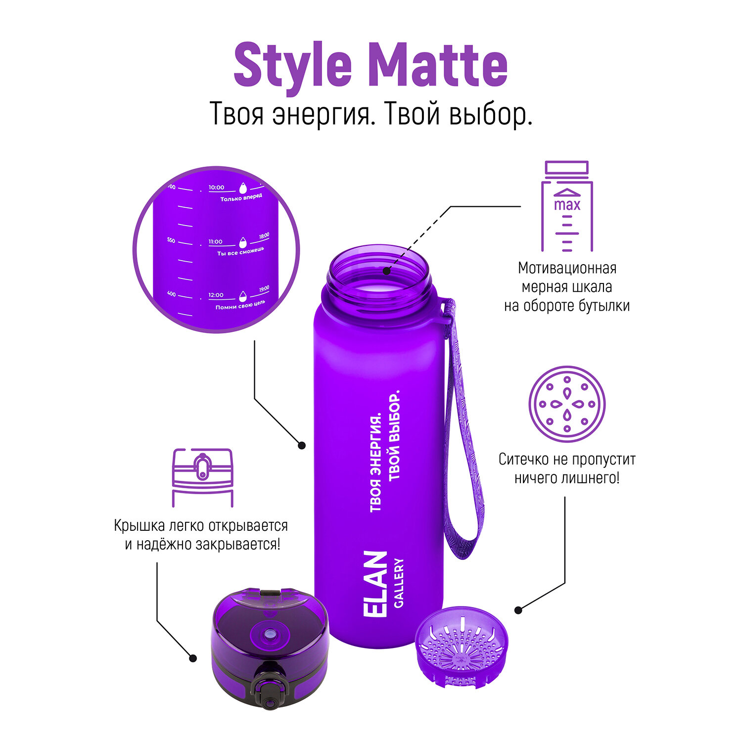 Ниже Вы можете прочитать отзывы на Бутылка для воды 1000 мл 7,8*7,8*28,5 см "Style Matte" мотивационная лаванда, ознакомится с подробными характеристиками, посмотреть интересные обзоры и фотографии на Бутылка для воды 1000 мл 7,8*7,8*28,5 см "Style Matte" мотивационная лаванда.