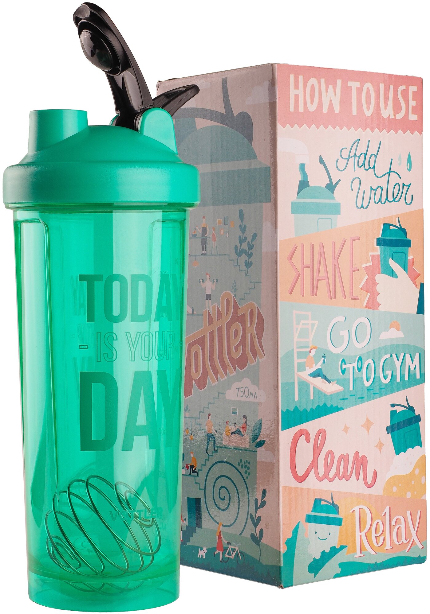 Шейкер VOTTLER бирюзовый 800 мл с шариком интересное: