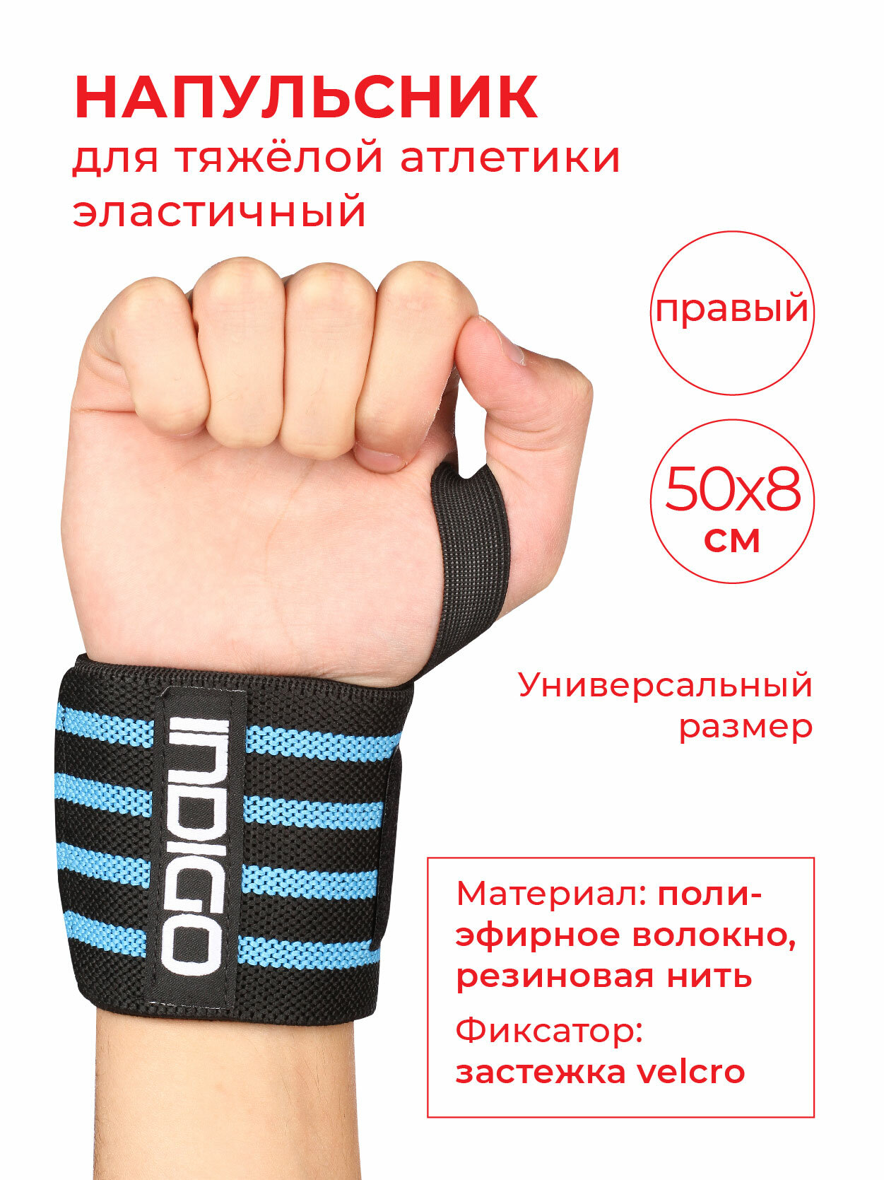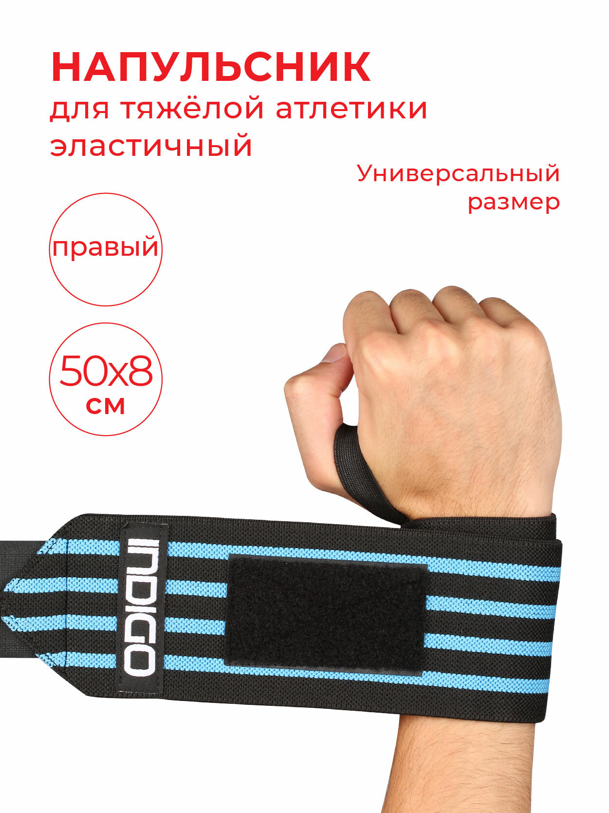Напульсник для тяжёлой атлетики эластичный правый IN203 Черно-голубой Универсальный интересное: