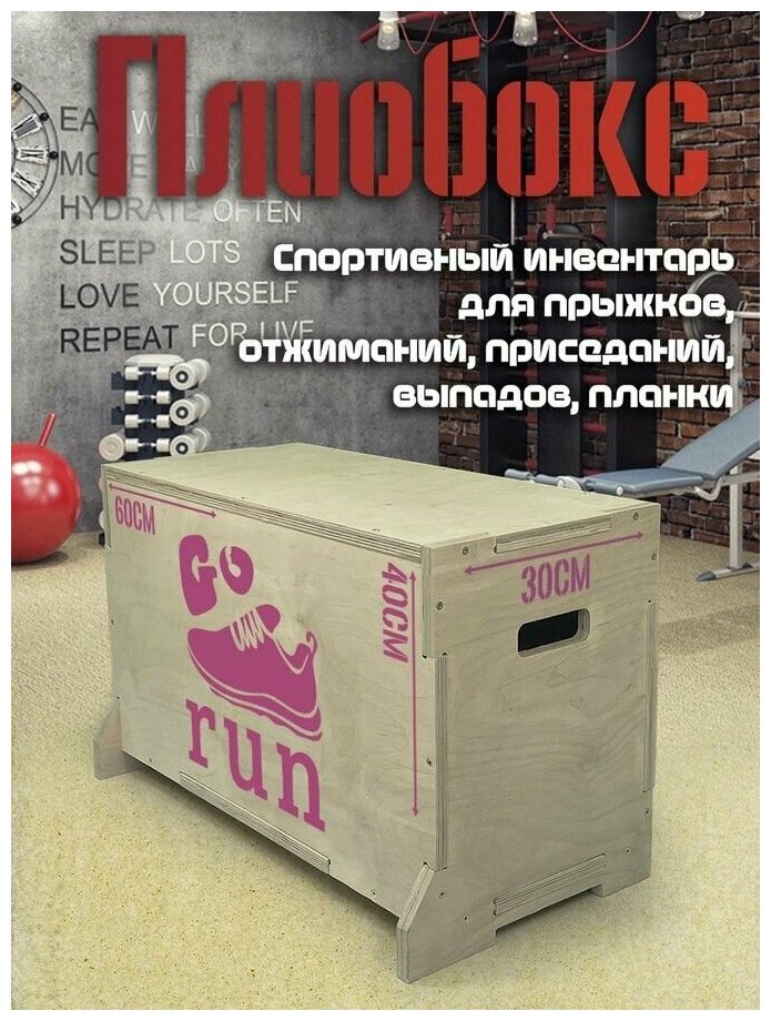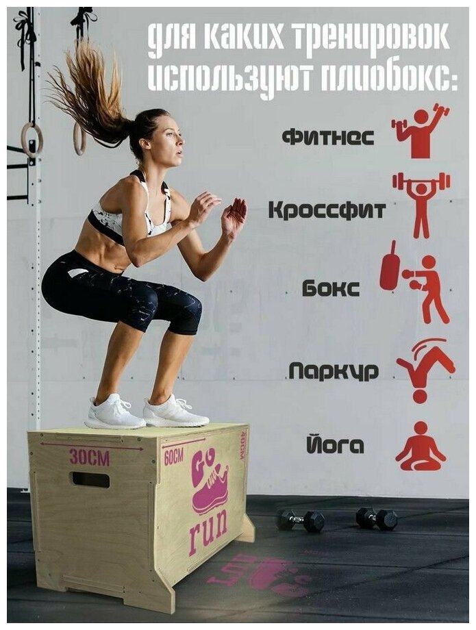 Плиобокс, Тумба для запрыгиваний, Плиометрический бокс, Тумба для кроссфитас розовым принтом Go run - 170