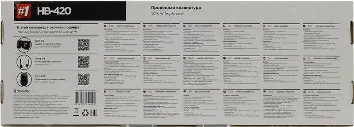 Клавиатура Defender HB-420 Black USB black, английская/русская (ISO), 1 шт.