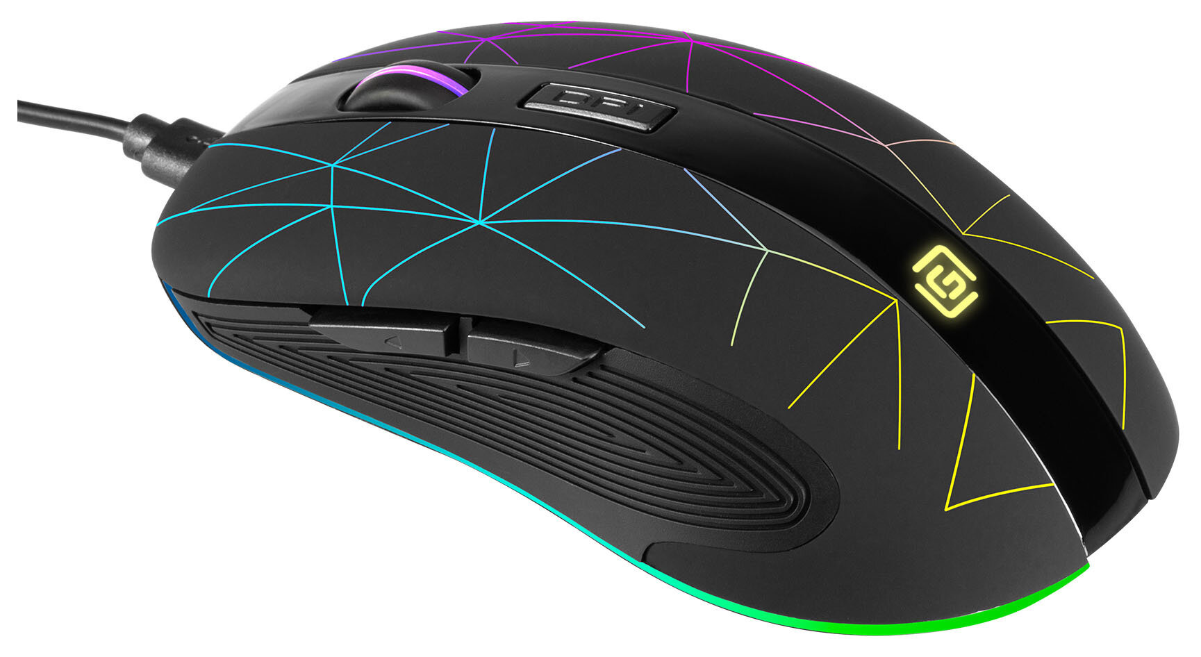 | Плюсы: | Интересное решение управлением dpi. Обтекаемая форма мышки, пальцы и кисть помещаются полностью. Игровой дизайн, да и еще подсветка смотрится все круто в сумме. |