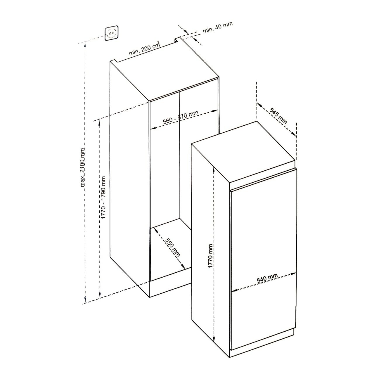Холодильник очень большой, вмещает любые продукты. Встроили тоже без проблем. |