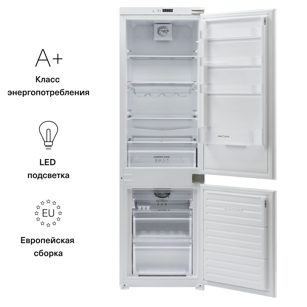 Холодильник KRONA BRISTEN FNF встраиваемый белый с морозильной камерой интересное: