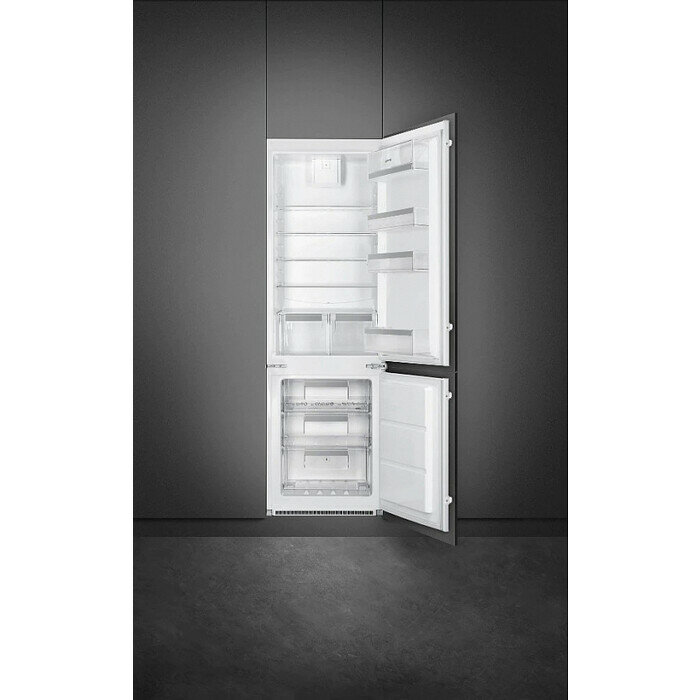 Встраиваемые холодильники SMEG/ Встриваемый комбинированный холодильник, объем камер 192+61л, нижняя морозильная камера, скользящие направляющие