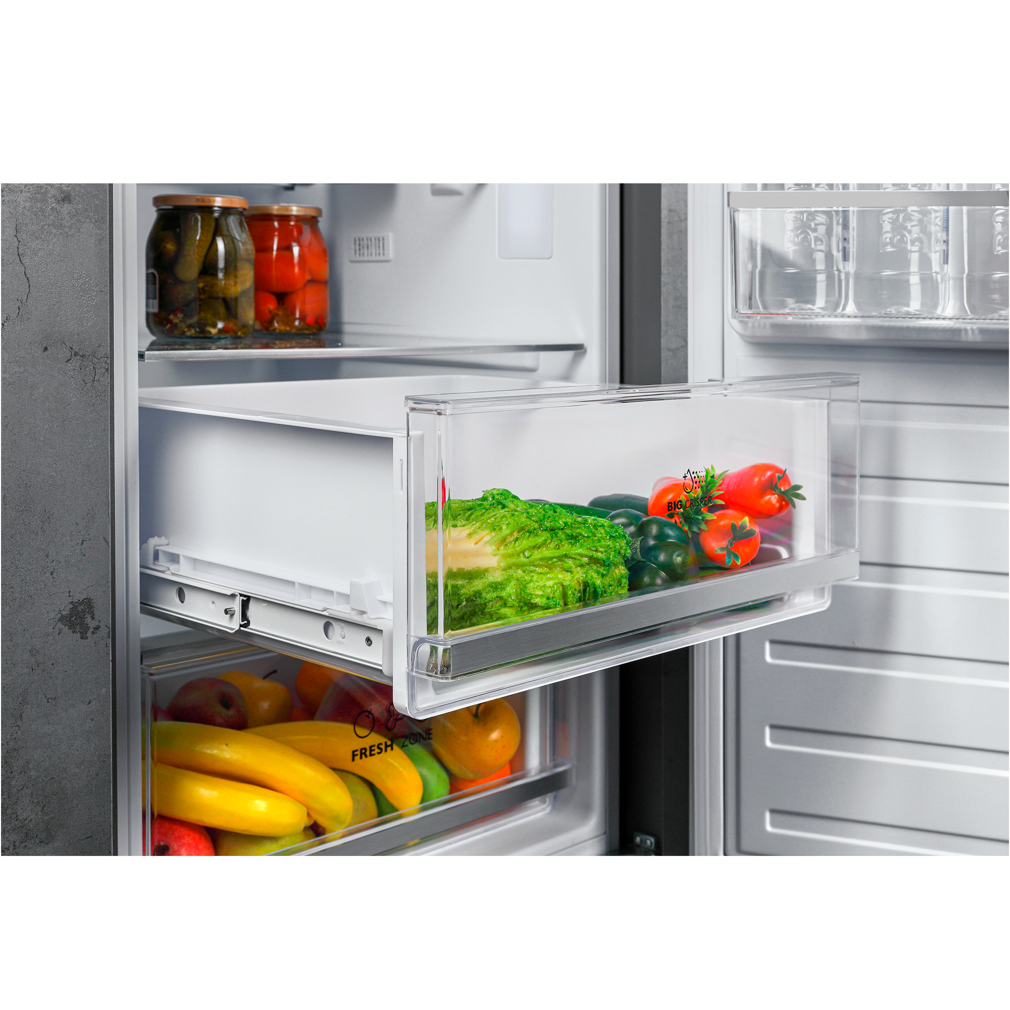 | Минусы: | Не совсем понравилась самая нижняя ниша для овощей, она не на полозьях, а просто ползает дном по нише(дну отсека), посмотрим будут ли образовываться царапины.