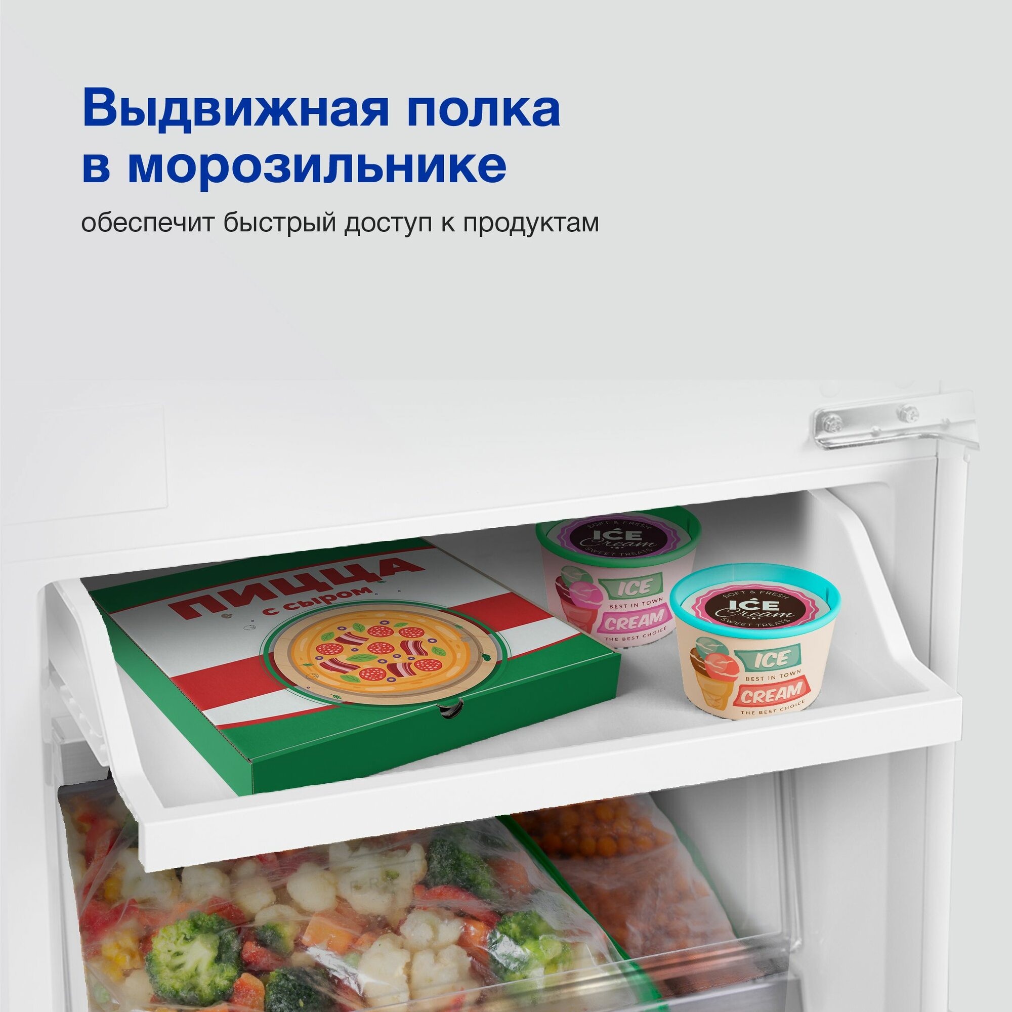 Встраиваемый холодильник Hyundai CC4033FV двухкамерный двухдверный, полный NO FROST, LED подсветка, Тихая работа 41 дБ, А+, Белый, метллическая отделка
