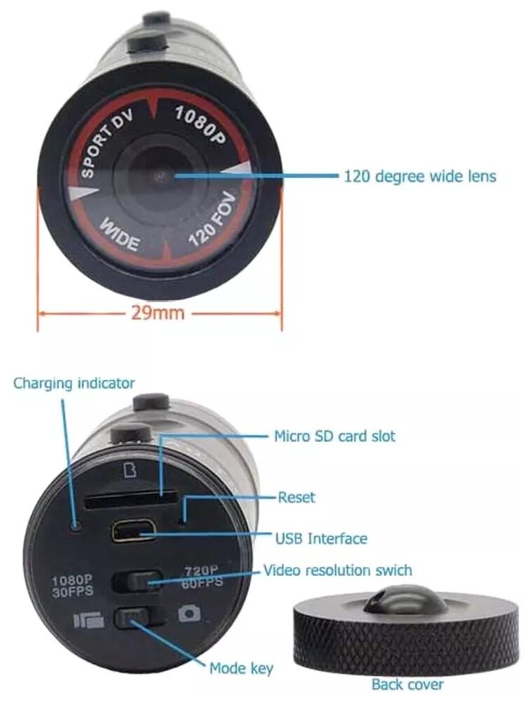Экшн-камера MBRIDGE M500 HD SPORT mini DV с набором креплений (шлем, руль, салон авто) интересное: