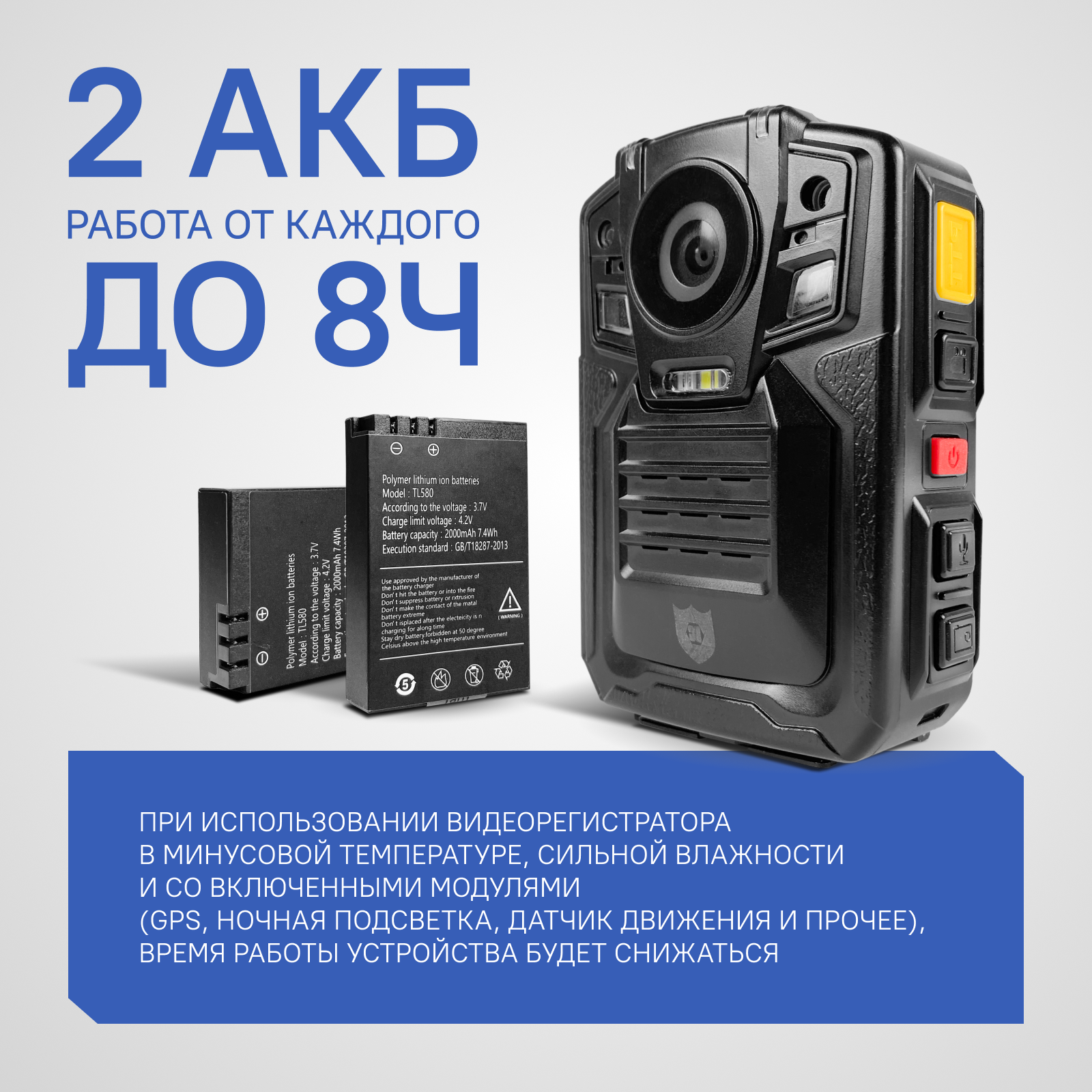 | Дополнительная информация | Аккумулятор сменный, 2шт в комплекте, каждый по 2000мАч |