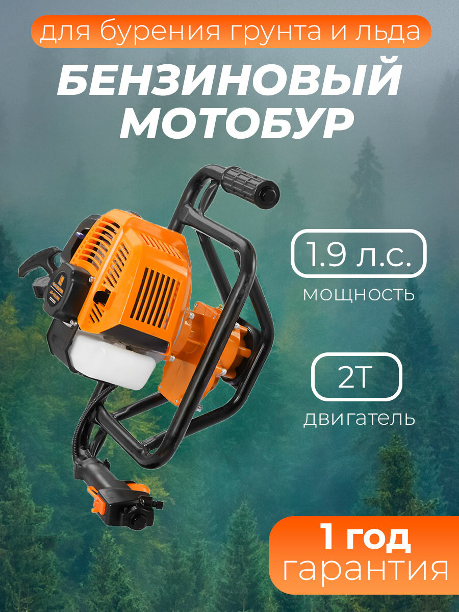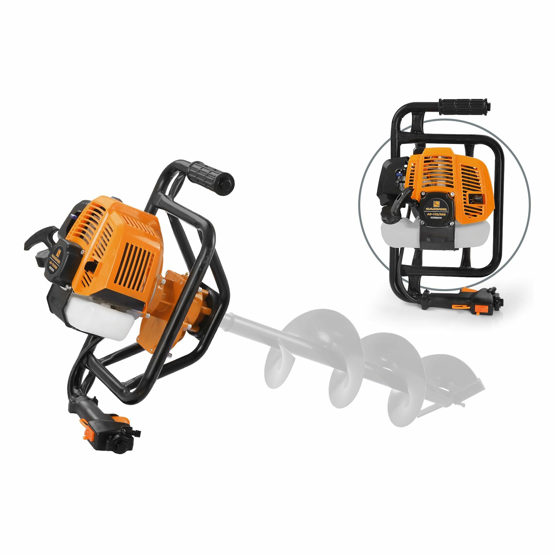 Мотобур бензиновый / бензобур для грунта и льда CARVER AG-152/000, мощность 1,9 л.с., без шнека