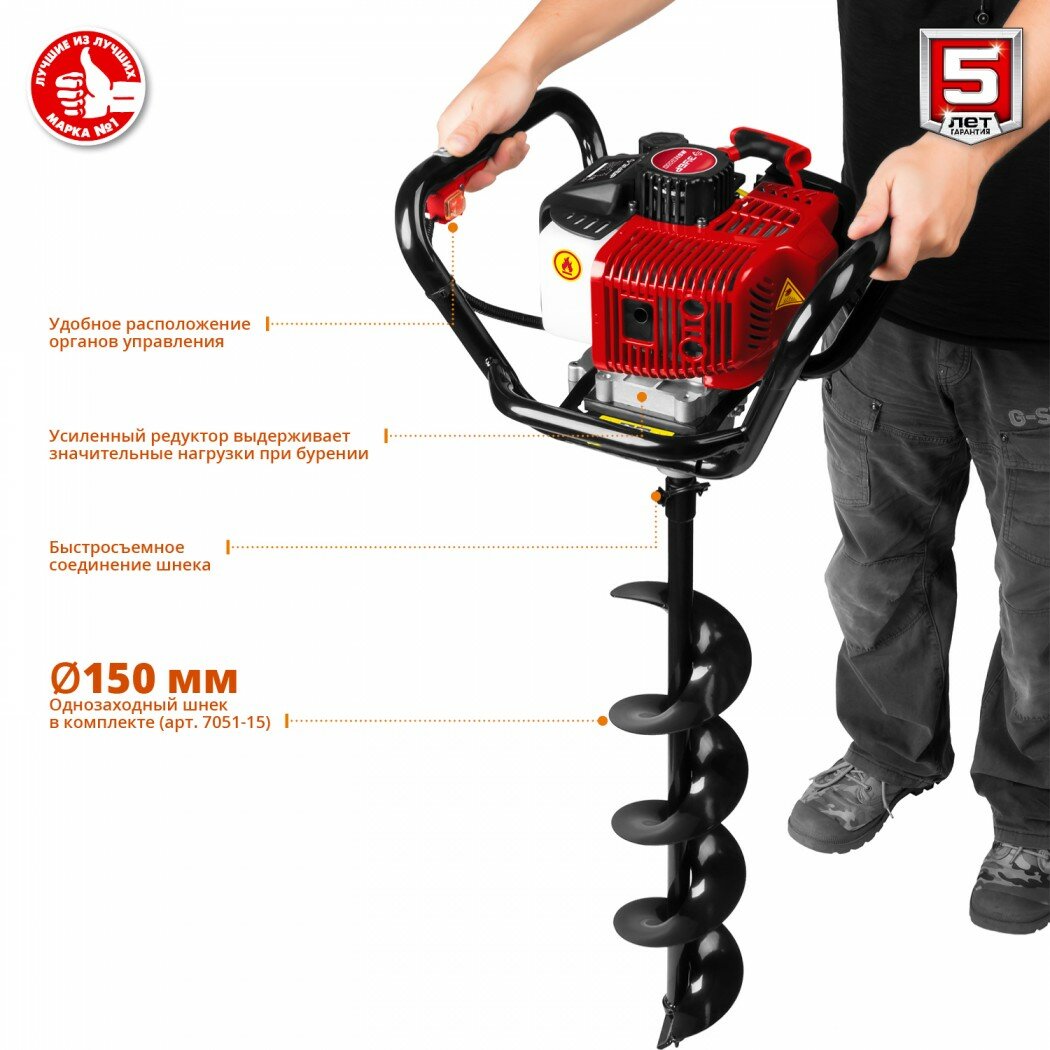 Мотобур (бензобур) со шнеком ЗУБР ⌀60-200 мм 52 см3 МБ1-200 Н