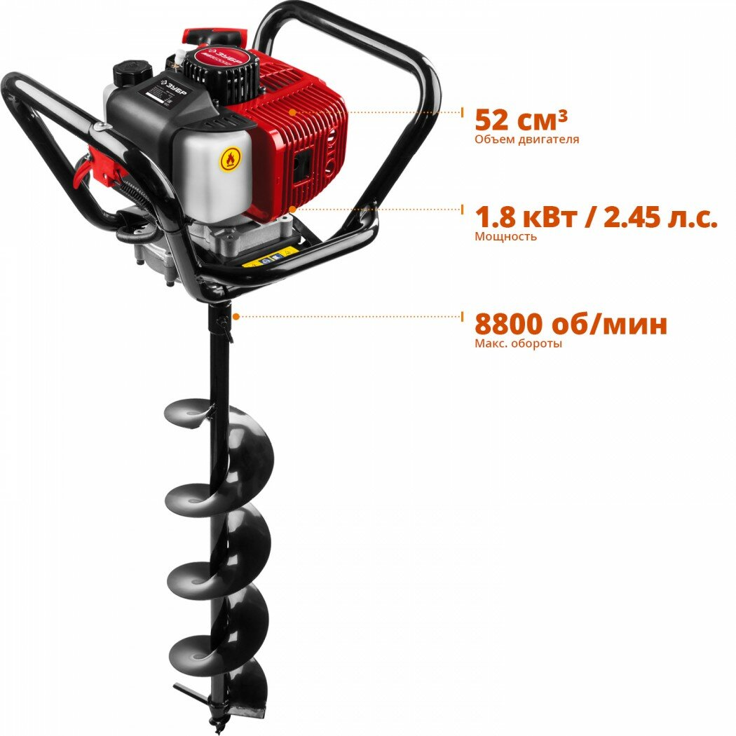 Мотобур (бензобур), d=60-200 мм, 52 см3, 1 оператор, ЗУБР
