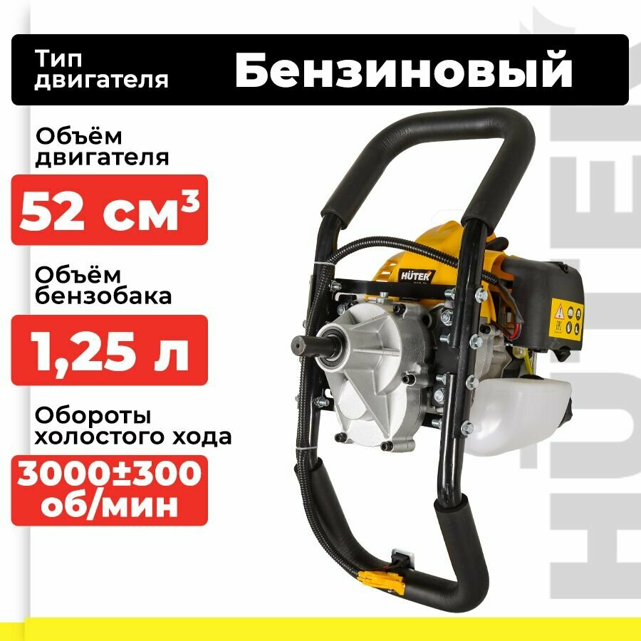 Мотобур бензиновый HUTER GGD-52, 52 см3, без шнека, мощность 2 кВт