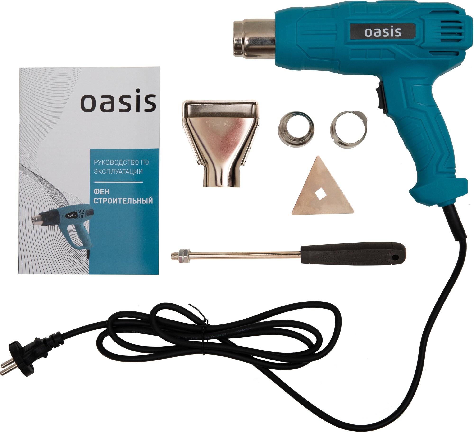 Строительный фен OASIS TG-20 2000 Вт; Рабочая температура 350/600 ℃;300/500 л/мин ; защита от перегрева