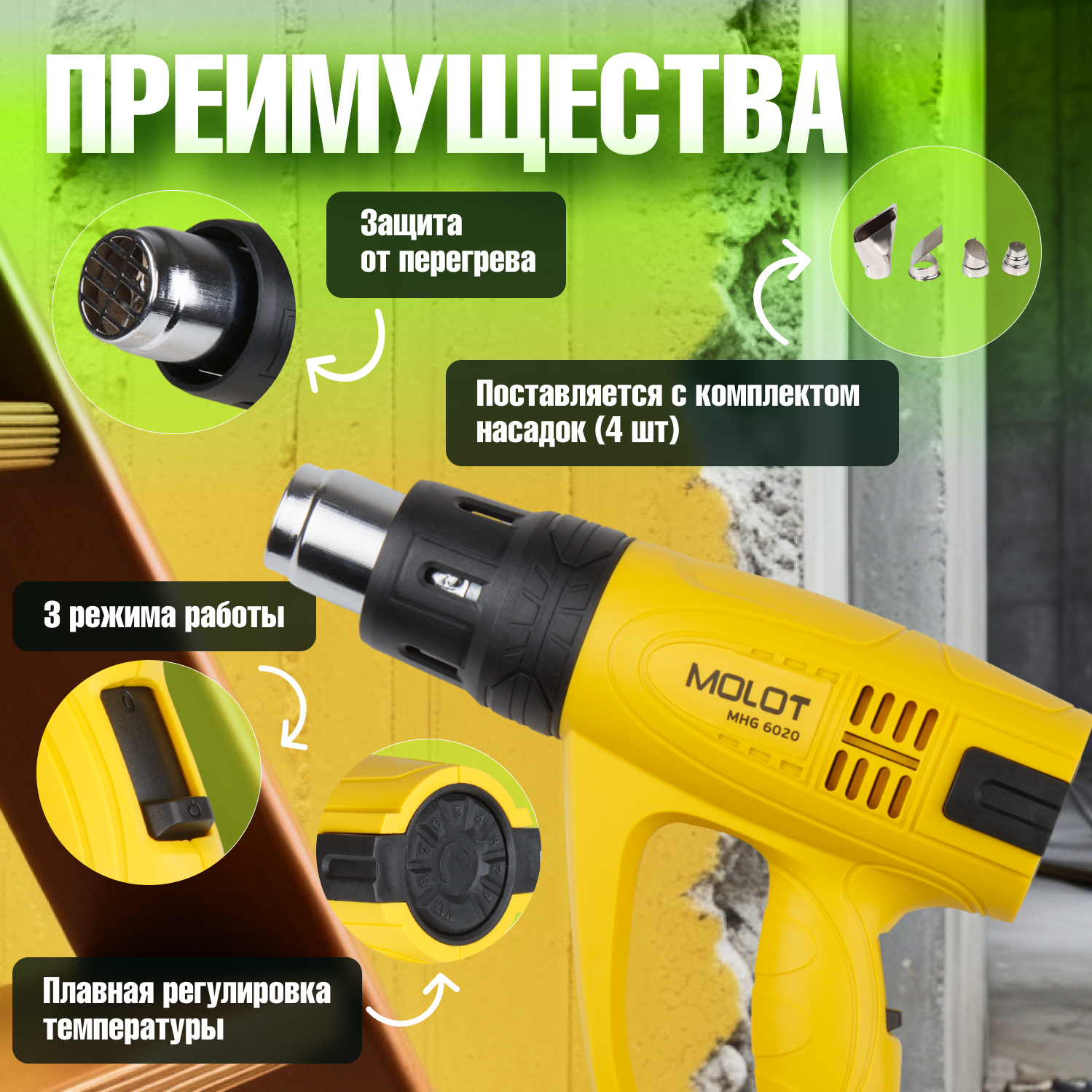 Фен строительный (термовоздуходувка) с 4 насадками MOLOT MHG 6020 (MHG602000011)