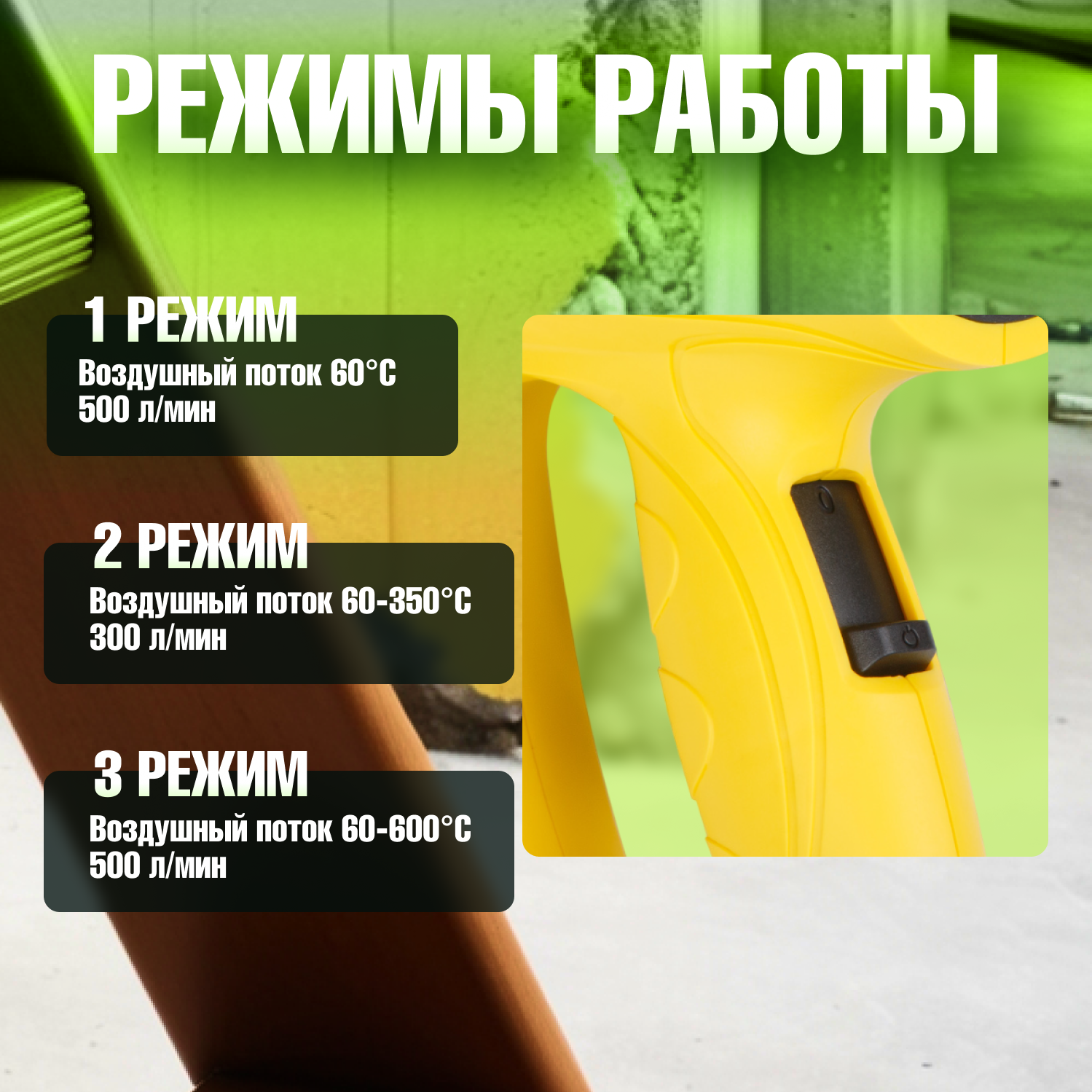 Фен технический (строительный), ЗУБР ФТ-2000, насадки 3 шт, 2 режима: 350град/ 350л/мин, 650град/ 550л/мин, коробка, 2000Вт