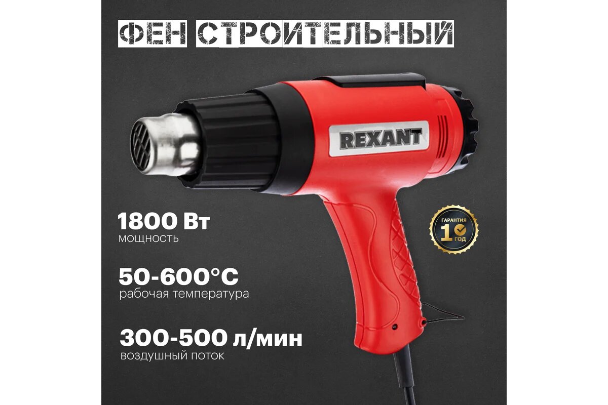 Фен строительный REXANT, 230 В/1600 Вт "MASTER" с терморегулятором (12-0056)