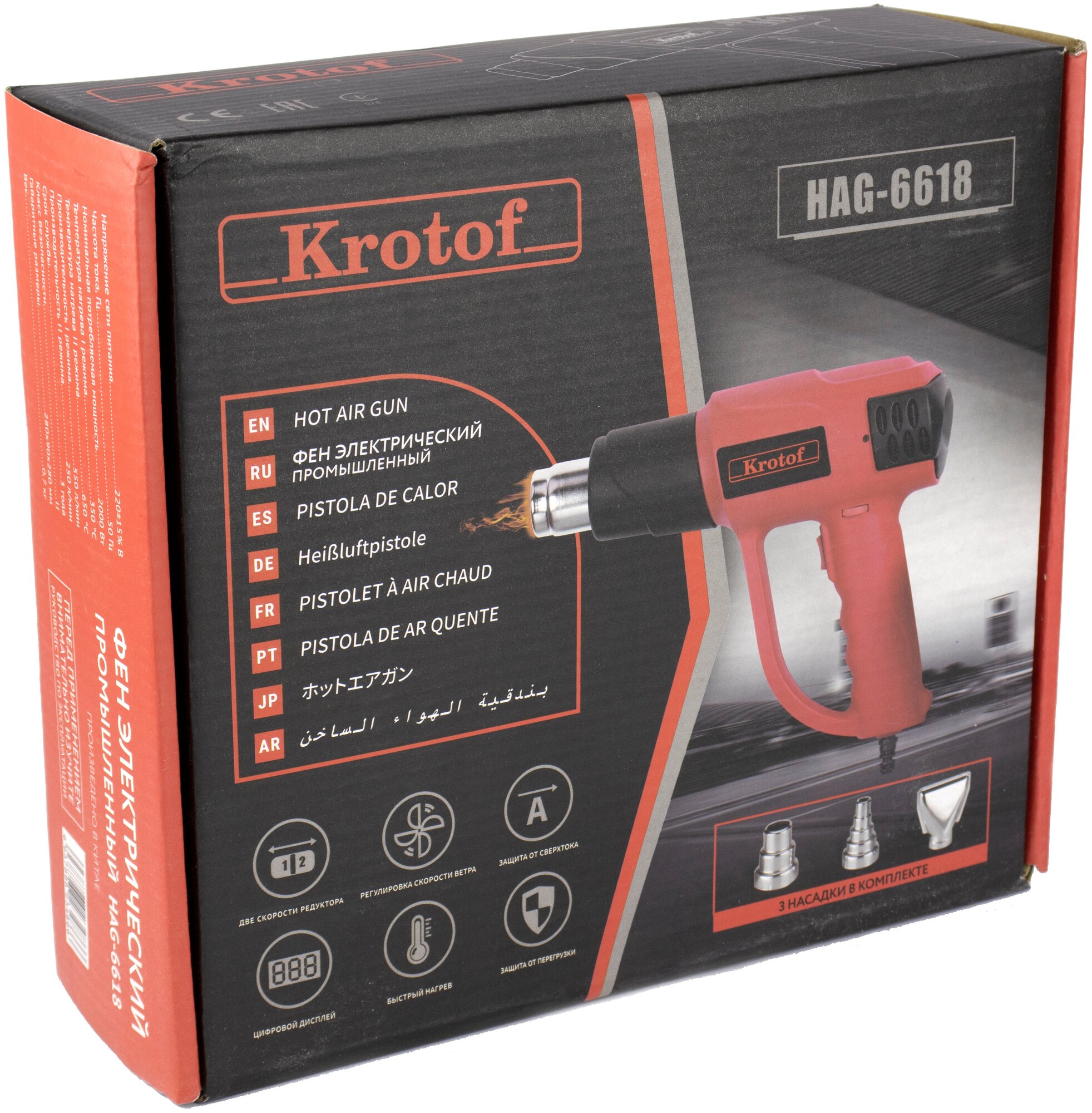 Фен строительный электрический Krotof HAG-6618, 2000 Вт, дисплей температуры / кротоф