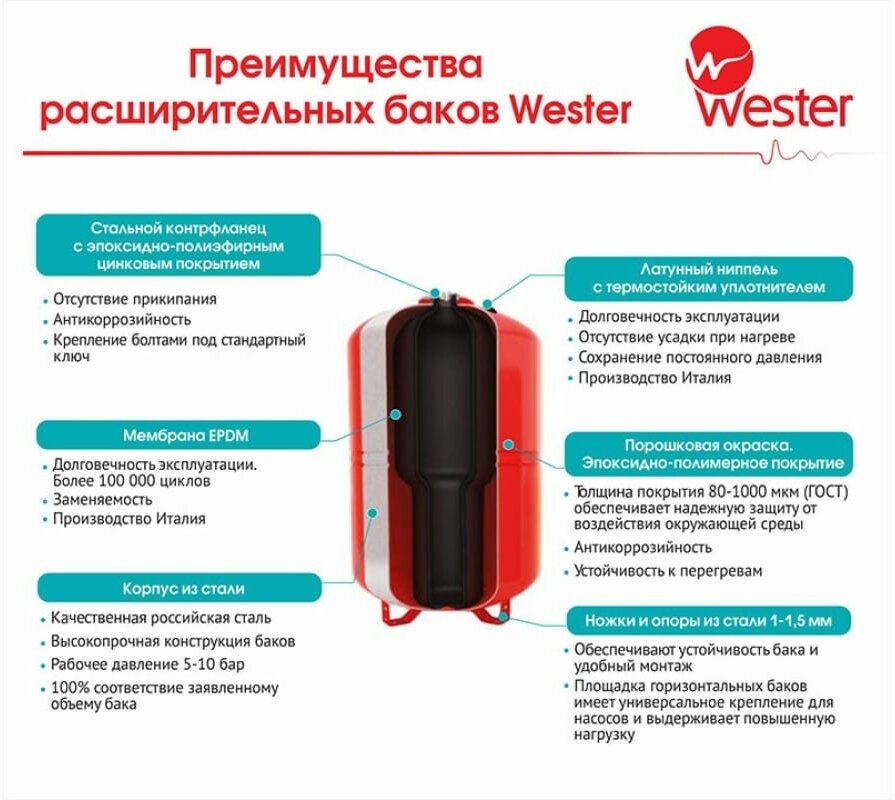 Бак мембранный WDV 8л для ГВС и гелиосистем WESTER Premium