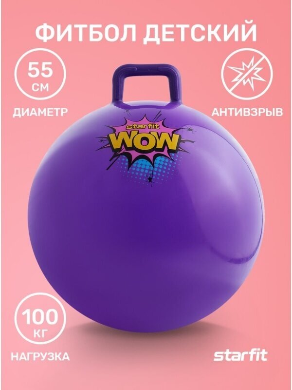 Фитбол детский с ручкой StarFit GB-411, 55 см, фиолетовый интересное: