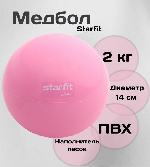 Медбол Starfit Gb-703, 2 кг, розовый пастель
