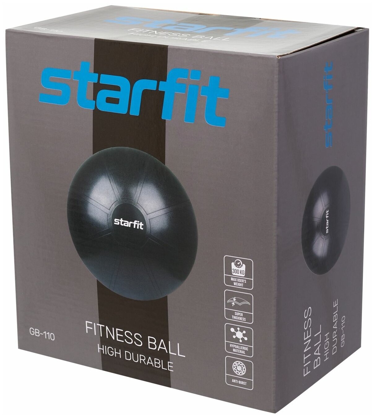 Фитбол высокой плотности STARFIT GB-110 75 см, 1400 гр, антивзрыв, черный, Без характеристики