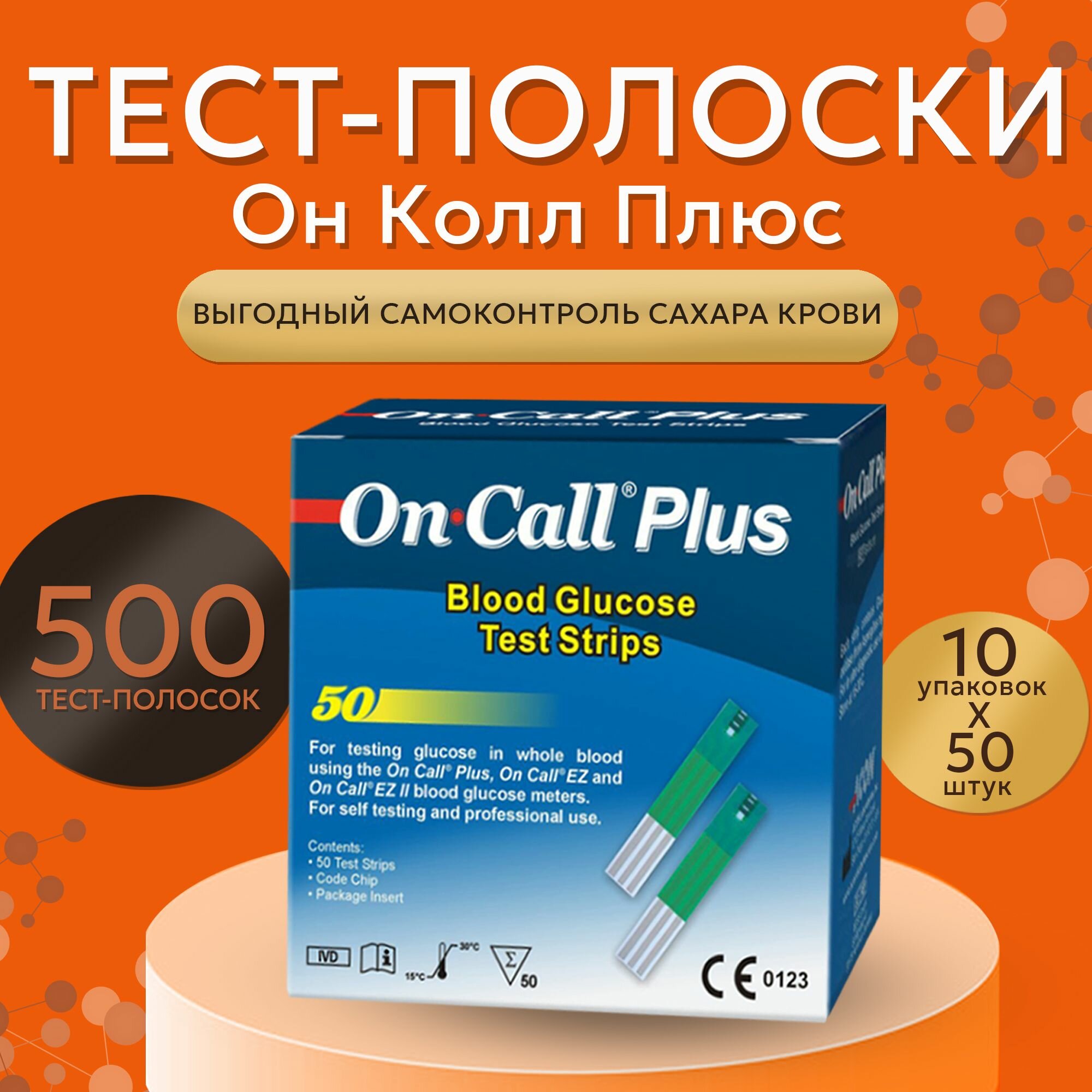 Тест-полоски для глюкометра Он Колл Плюс №50 (On Call Plus) - 10 упаковок