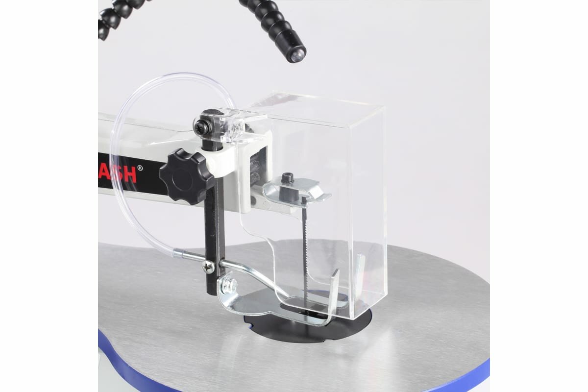 | Особенности | защитный экран / подсветка / пылеотвод / регулировка наклона рабочего стола / регулировка частоты хода |