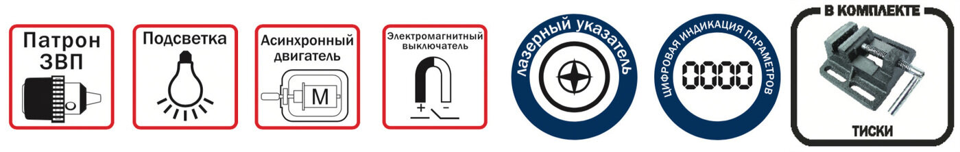 | Дополнительная информация | максимальное число оборотов 2580 об/мин; наличие подсветки; элевационная рейка; указатель точки сверления |