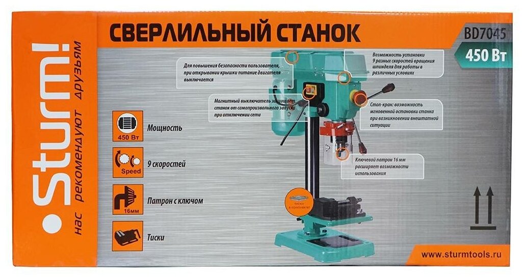 Вертикально-сверлильный станок Sturm! BD7045 интересное: