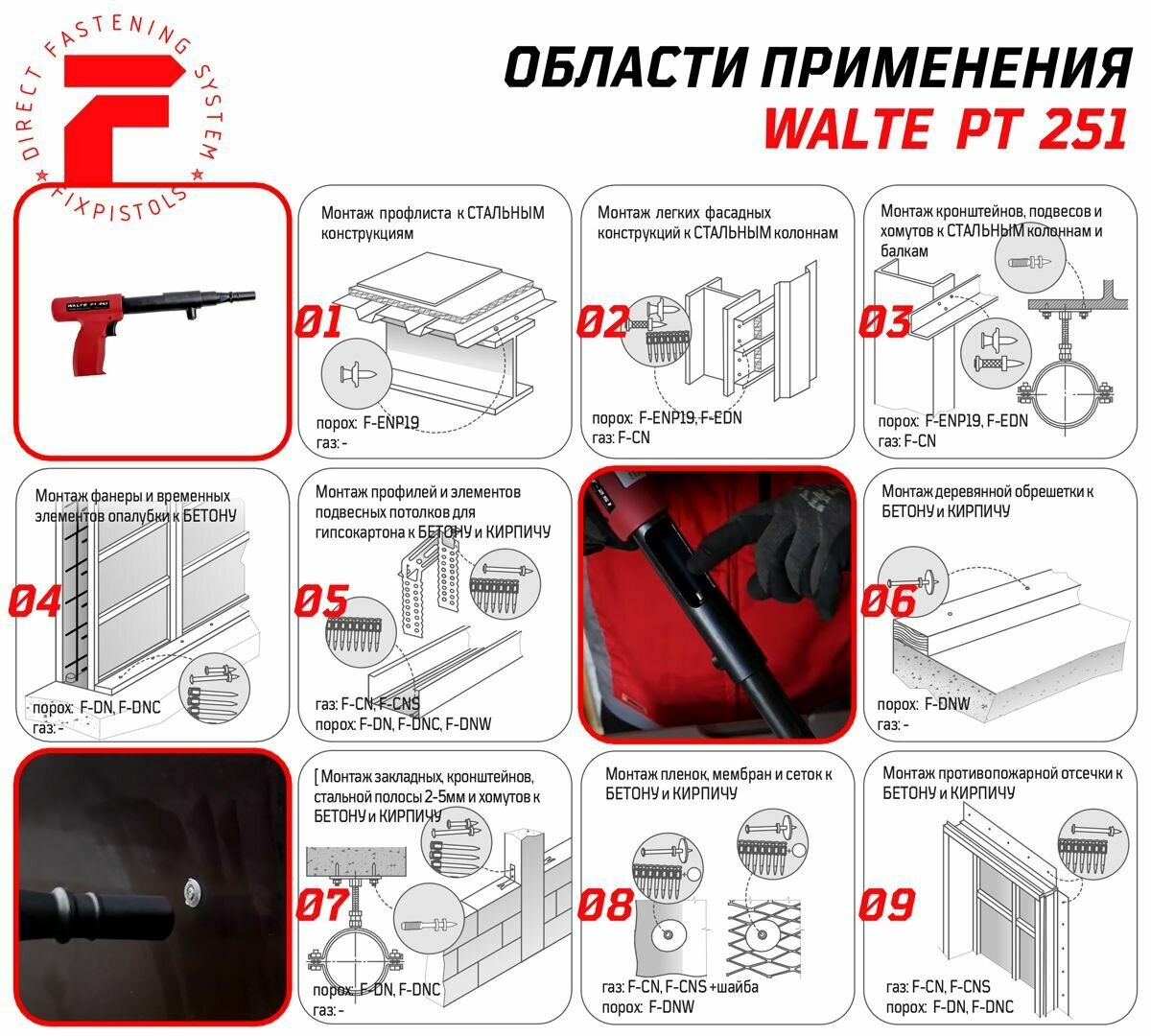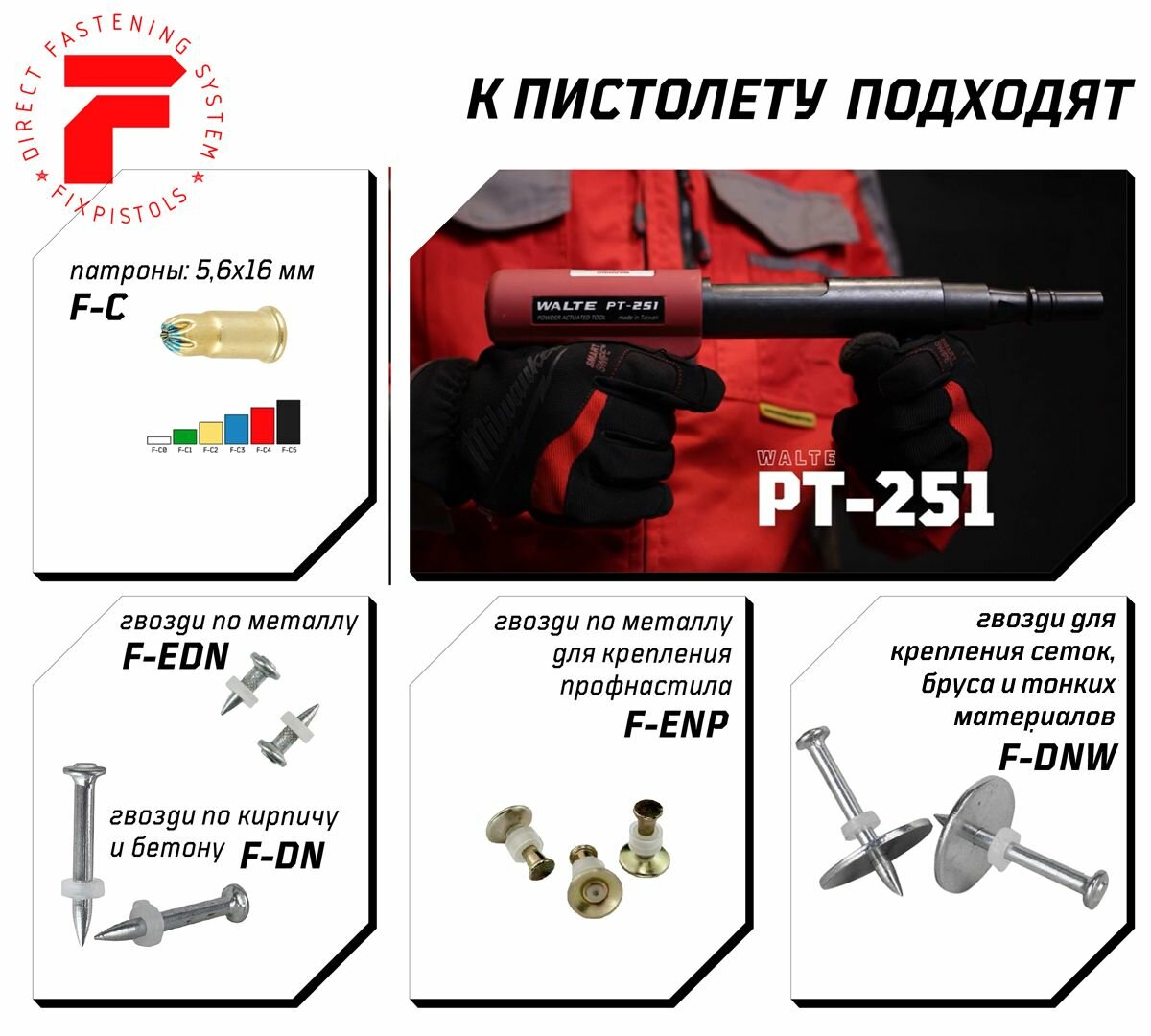 Пороховой монтажный пистолет Walte PT251 интересное: